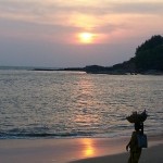 Ankunft in Gokarna bzw am Om Beach: 4 Uhr. Nachts. Eine Herberge öffnet wie bestellt ihre Pforten und Jemand schreit „need room?“. Und 9 Leute sagen geschlossen „no, we sleep on the beach“. Von neun Personen sind 2 Franzosen, einer Amerikaner und der Rest Deutsche. Wir laufen gemeinsam ein Stück und entscheiden dann, dass dieser Platz gut ist. Nur die Franzosen machen lieber ihr eigenes Ding und gehen weiter. Wir alle bleiben lieber safe gemeinsam. Ich packe mein Tuch aus, auf dem wir zu zweit locker Platz haben, ansonsten gibt es noch Handtücher, Rucksäcke und diverse andere Unterlagen. Ein Hund legte sich direkt während wir uns ausbreiteten neben uns ab und bewachte uns ab diesem Moment und gab sofort Alarm sobald Jemand auch nur annähernd vorbei kam. Wo man also zunächst bei jedem Geräusch skeptisch kuckte und beobachtete, verlieh der Hund bald Sicherheit und wir alle haben tief und fest geschlafen. Fazit aller Anwesenden: besser als im Sleeper Bus. Außerdem war der Ausblick beim Aufwachen natürlich traumhaft.