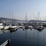 In einem kleinen Hafenbecken für ein paar Motor- und Segelboote finden wir einen Bieber. Er schwimmt hier.